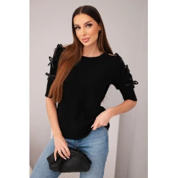 Dámský svetr s krátkým rukávem a ozdobnými mašličkami černý