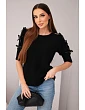 Dámsky sveter s krátkym rukávom a ozdobnými mašľami čierny