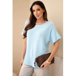 Dámský svetr s krátkým rukávem volného střihu modrý