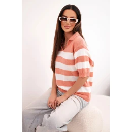 Dámský svetr s límečkem a krátkým rukávem pruhovaný model 21949226 - K-Fashion
