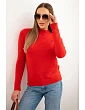 Dámsky mäkký pletený sveter s polodrážkou červenej farby