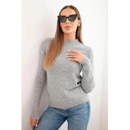 Dámsky mäkký pletený sveter s polokošeľou sivý
