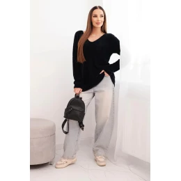 Dámský svetr s vlnou a výstřihem do V černý