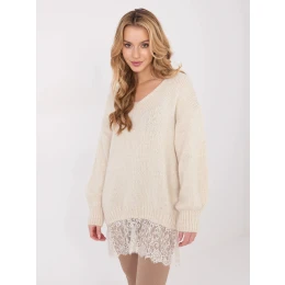 Dámský svetr v barvě ecru s přídavkem mohéru model 21818071 - Factory Price