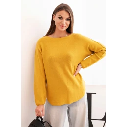 Dámsky viskózový sveter s dlhým rukávom a okrúhlym výstrihom horčicovej farby