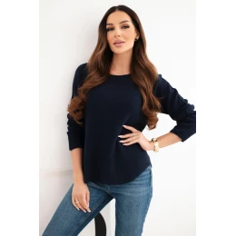 Dámský svetr z viskózy s dlouhým rukávem a kulatým výstřihem námořnická modrá