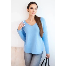 Dámsky viskózový sveter s výstrihom do V modrý
