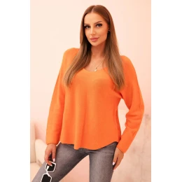 Dámský svetr z viskózy s výstřihem do V oranžový