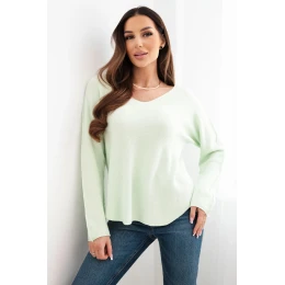 Dámský svetr z viskózy s výstřihem do V světle mátová