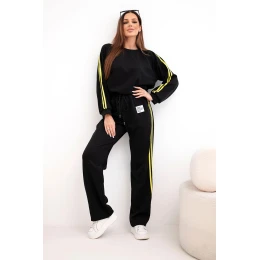 Dámský teplákový komplet model 21951909 s lampasy a volnou mikinou černý - K-Fashion