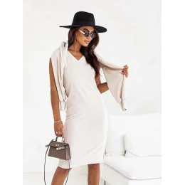 Dámsky pletený set v ecru farbe so šatami bez rukávov (82138)