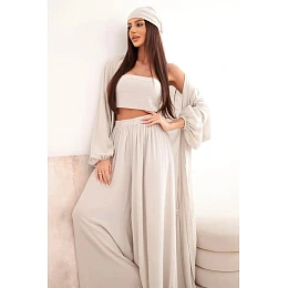 Dámsky viskózový 4-dielny set v boho štýle tmavobéžovej farby