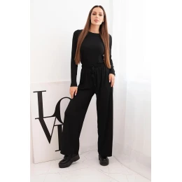 Dámský viskózový komplet s model 21731230 a širokými kalhotami černý - K-Fashion