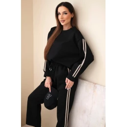 Dámska mikina v jednoduchom oversize strihu zaručuje pohodlie pri nosení a voľnosť pohybu. Dámske nohavice so širokými nohavicami a šnúrkou v páse sa dokonale prispôsobia postave a zvýraznia jej prednosti. Bočné lampasy dodávajú celku športový, moderný charakter, vďaka čomu dámska tepláková súprava dokonale zodpovedá aktuálnym trendom.