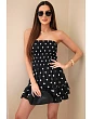 Štýlový a mimoriadne ženský dámsky overal v španielskom strihu je ideálnou voľbou na teplé dni. Model vyniká elastickým, nariaseným vrchným dielom, ktorý sa dokonale prispôsobí postave a zvýrazní poprsie a pás. Odhalené ramená dodávajú celku ľahkosť a jemnú eleganciu, zatiaľ čo voľnejší spodný diel zakončený volánom dodáva ladnosť a voľnosť pohybu. Vďaka nadčasovému vzoru bodiek pôsobí overal módne a sviežo a dokonale zapadá do letných trendov.