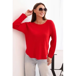 Dámsky viskózový sveter s dlhými rukávmi a okrúhlym výstrihom červený
