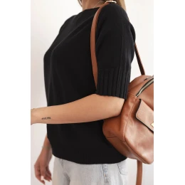Dámsky viskózový sveter s krátkymi rukávmi čierny