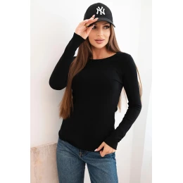 Dámský viskózový svetr s kulatým výstřihem a model 21412206 střihem černý - K-Fashion