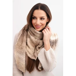 Štýlový dámsky šál vyrobený z vlákna mäkkého na dotyk s prímesou prírodnej vlny. Vďaka jemnej štruktúre a hrejivému materiálu je ideálny na chladnejšie dni, objíme krk a dodá šarm zimnému stylingu.