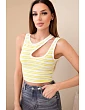 Tento štýlový dámsky prúžkovaný top je ideálnou voľbou na leto pre ženy, ktoré majú rady moderné a ženské strihy. Priliehavý strih krásne zvýrazňuje postavu a efektný výstrih dodáva celku výnimočný charakter. Kontrastné lemovanie a prúžkovaný vzor zaručujú, že model upúta pozornosť a dokonale zapadá do súčasných trendov.