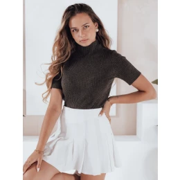 Dámský žebrovaný svetr s krátkým rukávem hnědý Dstreet model 21991056 - FashionStreet
