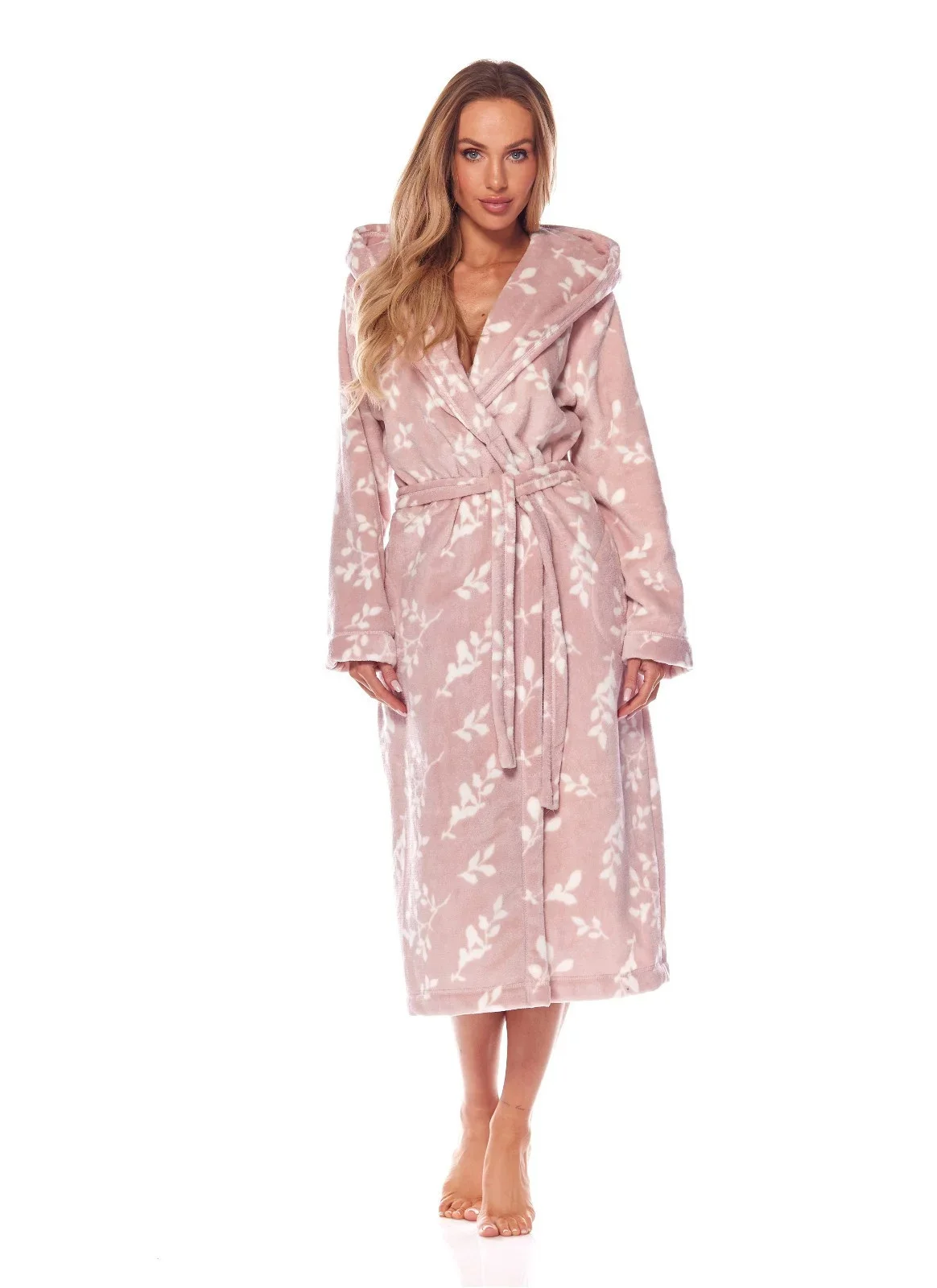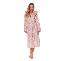 Župan je vyrobený z měkké vzorované tkaniny typu "soft. Dlouhé rukávy jsou olemované manžetami. Model má kapsy a v pase se zavazuje.