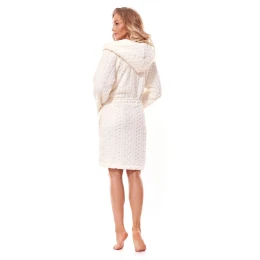 Dámský župan 2308 Swet cream L&L - krémová barva - z měkkého materiálu typu soft - se vzorem - na bocích kapsy - zavazování v pase na pásek - s kapucí