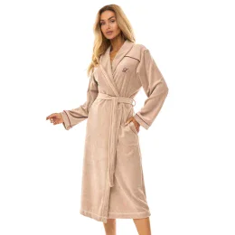 Zoznámte sa s výnimočným dámskym županom 2508, ktorý spája elegantný vzhľad s pohodlným strihom. Je vyrobený z vysokokvalitných materiálov - mäkkej bavlny s prímesou polyesteru - dokonale obopína telo a poskytuje teplo a pohodlie kedykoľvek počas dňa. Klasický strih so šálovým golierom a dlhými rukávmi zdôrazňuje nadčasovú eleganciu. Jemné výšivky a kontrastné lemy dodávajú decentný šarm. Praktické vrecká a viazanie v páse zabezpečujú funkčnosť. Ideálny na chladné rána a večery - doma, v hoteli alebo pri relaxácii v kúpeľoch.