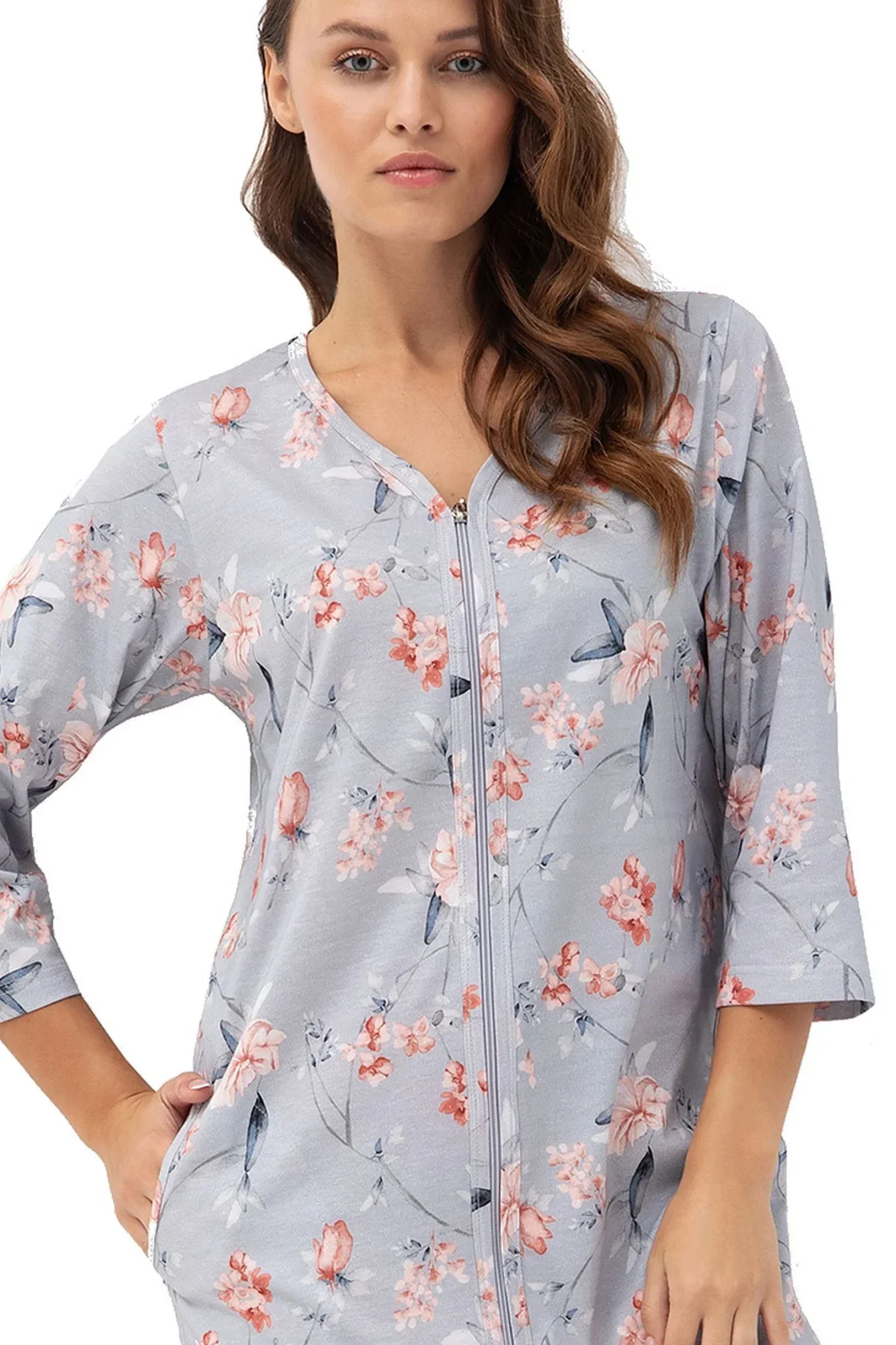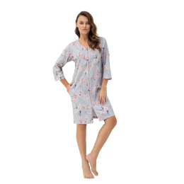Dámsky župan 392 grey Luna - sivý - z kvalitnej bavlny - so vzorom - trojštvrťové rukávy - zapínanie na zips - s vreckamiZloženie materiálu: 100% bavlna