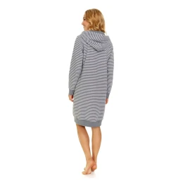 Dámský župan 5246 dark grey Doctornap - tmavě šedá barva - z vysoce jakostní bavlny - s pruhy - zapínání na zip - s kapucí - s kapsami - rukávy a spodní lem zakončené efektním lemem - délka nad kolena - certifikát OEKO-TEX Standard 100