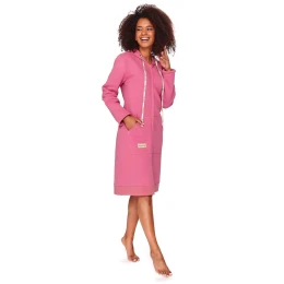 Dámsky župan 9756 Doctor nap - vyrobený z kvalitnej a príjemnej organickej bavlny - tmavoružová farba - zapínanie na zips - s kapucňou - s vreckami - dĺžka nad kolená - certifikát OEKO-TEX Standard 100