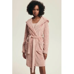 Szlafrok damski DEVYN 43602 AW25 to doskonała propozycja dla kobiet ceniących wygodę, elegancję i nowoczesne wzornictwo. Wykonany z wyjątkowo miękkiego materiału o geometrycznym tłoczeniu, zapewnia przyjemne ciepło i stylowy wygląd. Wyposażony w duży kaptur, pojemne kieszenie i pasek do przewiązania w talii, łączy w sobie funkcjonalność z subtelną kobiecością. Dostępny w modnych, pudrowych odcieniach, będzie idealnym towarzyszem poranków, wieczorów i chwil relaksu w domowym zaciszu.