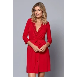 Dámsky viskózový župan so zaväzovaním v páse. Okraje sú zdobené čipkou. Rukávy sú 3/4 dlhé.