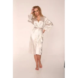 Elegantní dámský župan z jemného saténu. Dlouhé rukávy, pásek na zavazování. Materiál poskytuje měkkost na vnitřní straně a vysoký lesk na vnější straně. Celková délka měřená od ramenního švu je cca 115 cm. Župan je zabalen v elegantním dárkovém balení, může být ideálním dárkem pro někoho výjimečného.