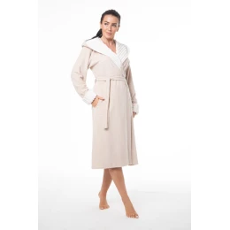 Dámsky župan FR-394 značky Dorota je elegantným a funkčným návrhom pre ženy, ktoré si cenia pohodlie a štýl. Je vyrobený z kvalitnej tkaniny (100 % bavlna), je mäkký, príjemný na dotyk a zaručuje tepelný komfort. Tento model dlhšieho strihu má praktickú kapucňu a pás na zaväzovanie v páse, ktorý umožňuje dokonalé prispôsobenie. Rukávy a kapucňa sú zdobené reliéfnym chmýřím, ktoré im dodáva útulný a moderný nádych. Je ideálnou voľbou po kúpeli aj na večerný relax doma.