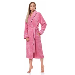 Hrejivý dámsky župan značky L&L. Luxusný dámsky župan bez kapucne. Župan má po stranách dve vrecká a má dĺžku do pol lýtok.