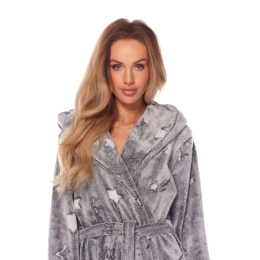 Dámský krátký župan 2212 L&L - z měkké tkaniny velmi příjemné na dotyk - melanžová barva s potiskem hvězdiček - na bocích našité kapsy - s kapucí - zavazování v pase na pásek