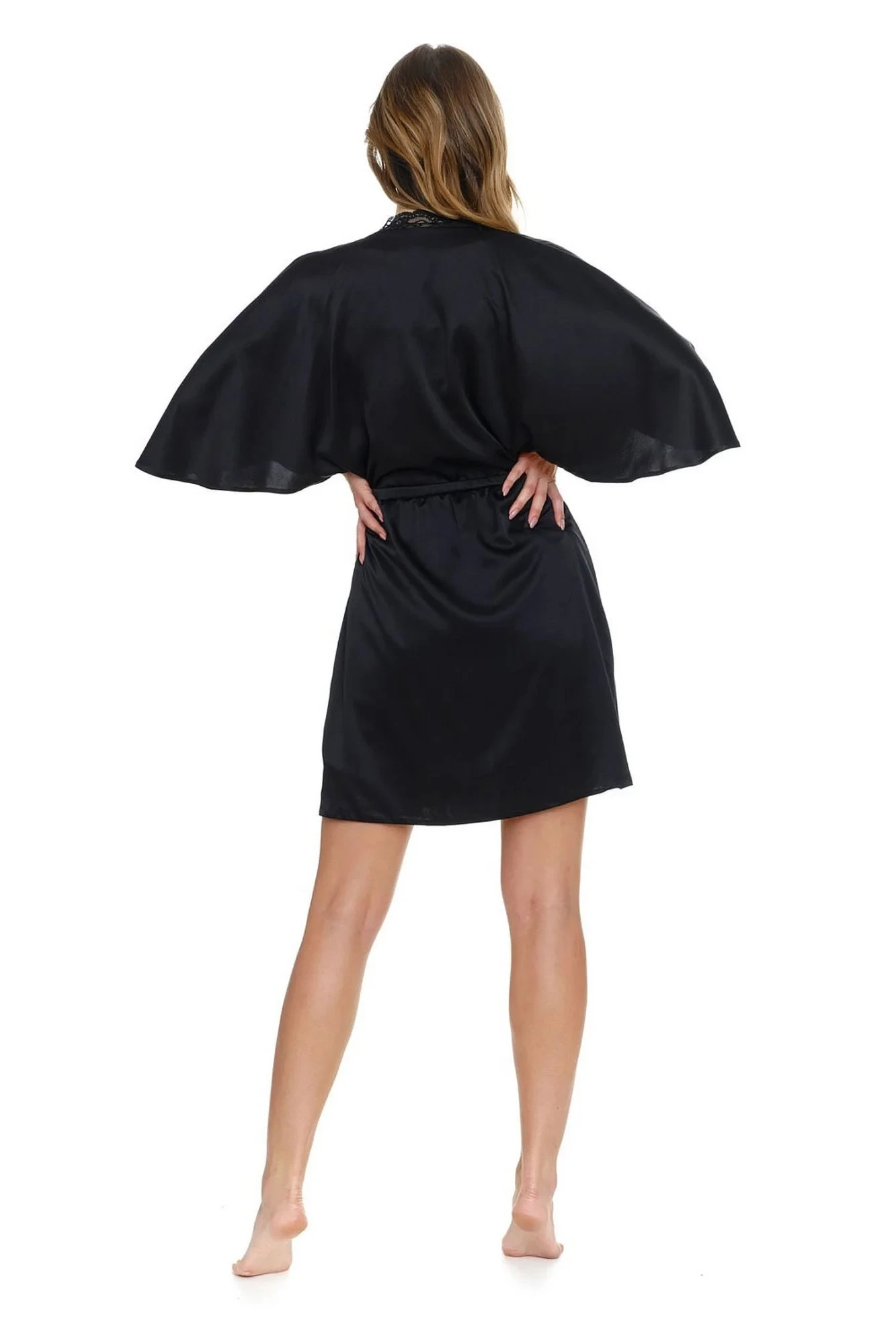 Dámský župan 5102 Doctor nap - vyrobené z velmi kvalitního a příjemného materiálu - černá barva - zdobený krajkovou vsadkou - délka nad kolenaMateriálové složení: 95% viskóza + 5% elastan