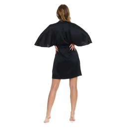 Dámský župan 5102 Doctor nap - vyrobené z velmi kvalitního a příjemného materiálu - černá barva - zdobený krajkovou vsadkou - délka nad kolena