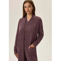 Dámský župan značky Henderson. Župan je dlouhý pod kolena, olemovaný širším lemem, který je také na spodní části županu a kolem rukávů. Župan má na bocích delší rozparky. Župan je volný, na bocích jsou našité kapsy. Dá se také nosit jako dlouhý kardigen.