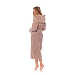 Dámský župan 2205 Brandi angora L&L - Angora barva - velmi měkký a příjemný materiál na dotek - s kapucí - na bocích našité kapsy - zavazování na pásek