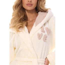 Dámský župan s kapucí značky L&L. Župan je dlouhý pod kolena. Na bocích jsou zapuštěné kapsy. Župan lze okolo pasu uvázat páskem. Župan je velmi příjemný na dotek.