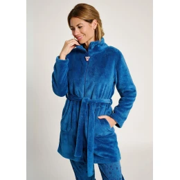 Tento dámský župan Muydemi v krásné sytě modré barvě je ideální volbou pro chladné dny i pohodové domácí večery. Vyrobený z extra měkkého a hřejivého materiálu, který je příjemný na dotek, poskytuje maximální komfort po celý den. Župan má praktické zapínání na zip, doplněné o roztomilý detail u krku, a zavazování v pase, díky kterému si snadno upravíte požadovanou siluetu. Nechybí ani dvě pohodlné kapsy. Moderní střih, hebký povrch a jemný vzor dodávají županu stylový vzhled, který vás potěší při každém nošení.