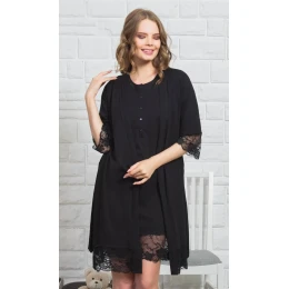 Dámský župan s noční košilí Adéla. Pohodlný a přitom sexy komplet se skládá z noční košile a župánku. Košile má légu rozepínací na knoflíky a je zakončena krajkou. Stejná krajka je použita i na rukávech a spodním lemu županu. Použitý materiál je jemný a poddajný na dotek. Komplet je vhodný i na denní nošení.