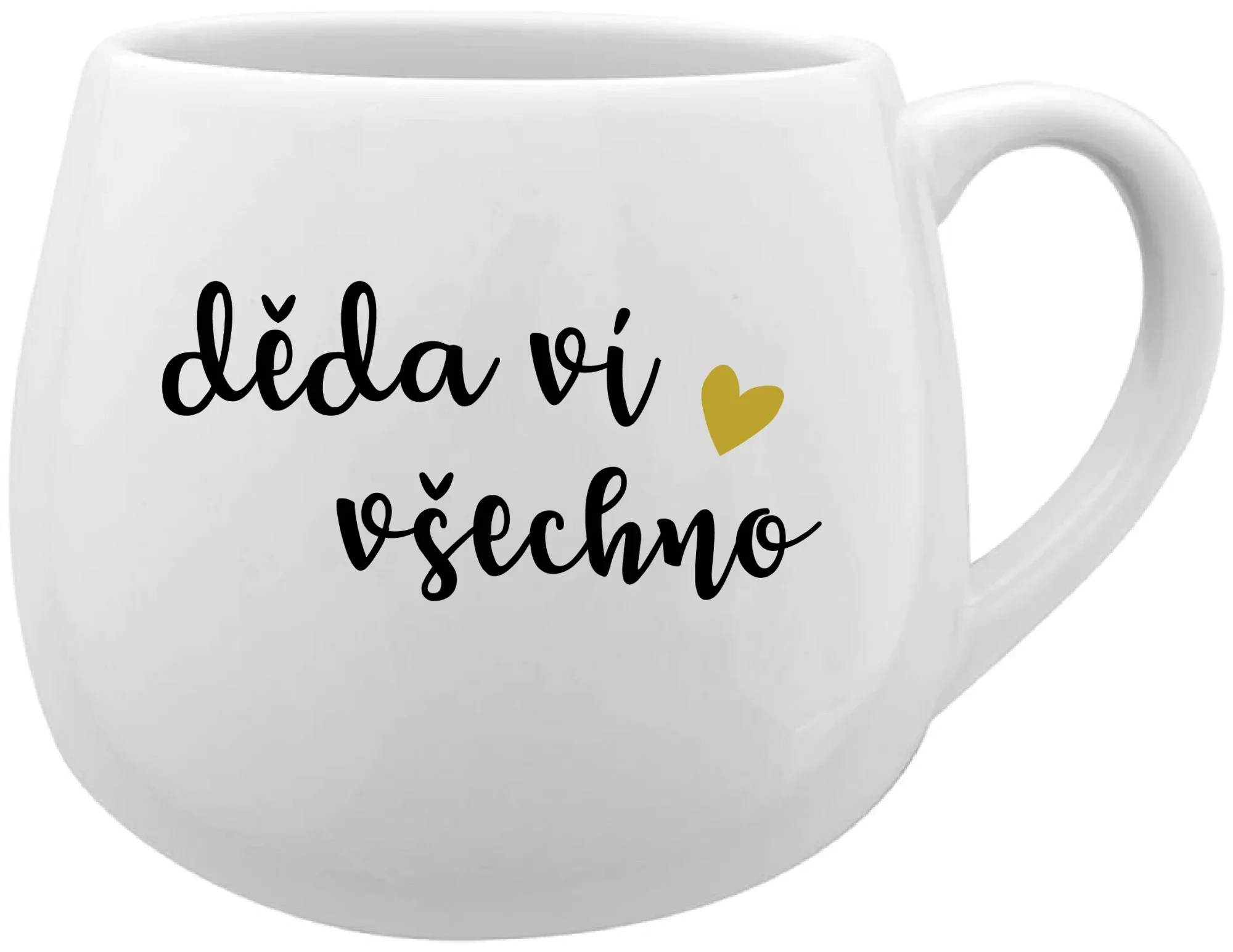 DĚDA VÍ VŠECHNO - bílý keramický hrníček 300 ml