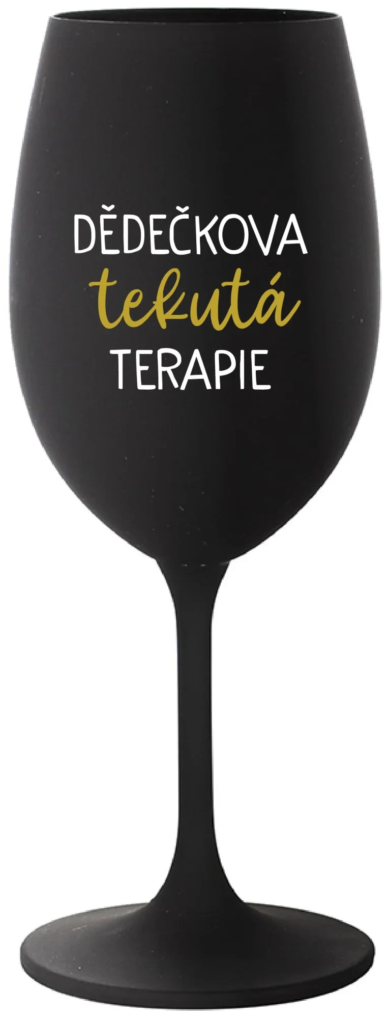 DĚDEČKOVA TEKUTÁ TERAPIE - černá sklenice na víno 350 ml