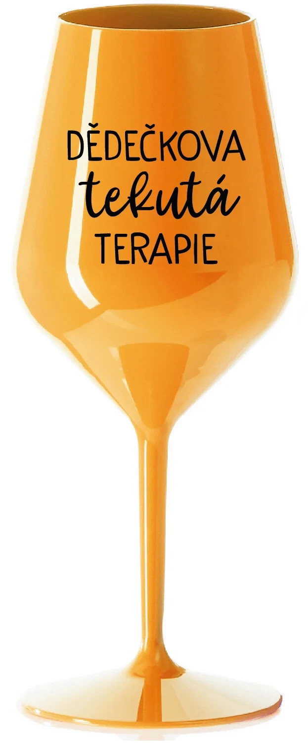 DĚDEČKOVA TEKUTÁ TERAPIE - oranžová nerozbitná sklenice na víno 470 ml