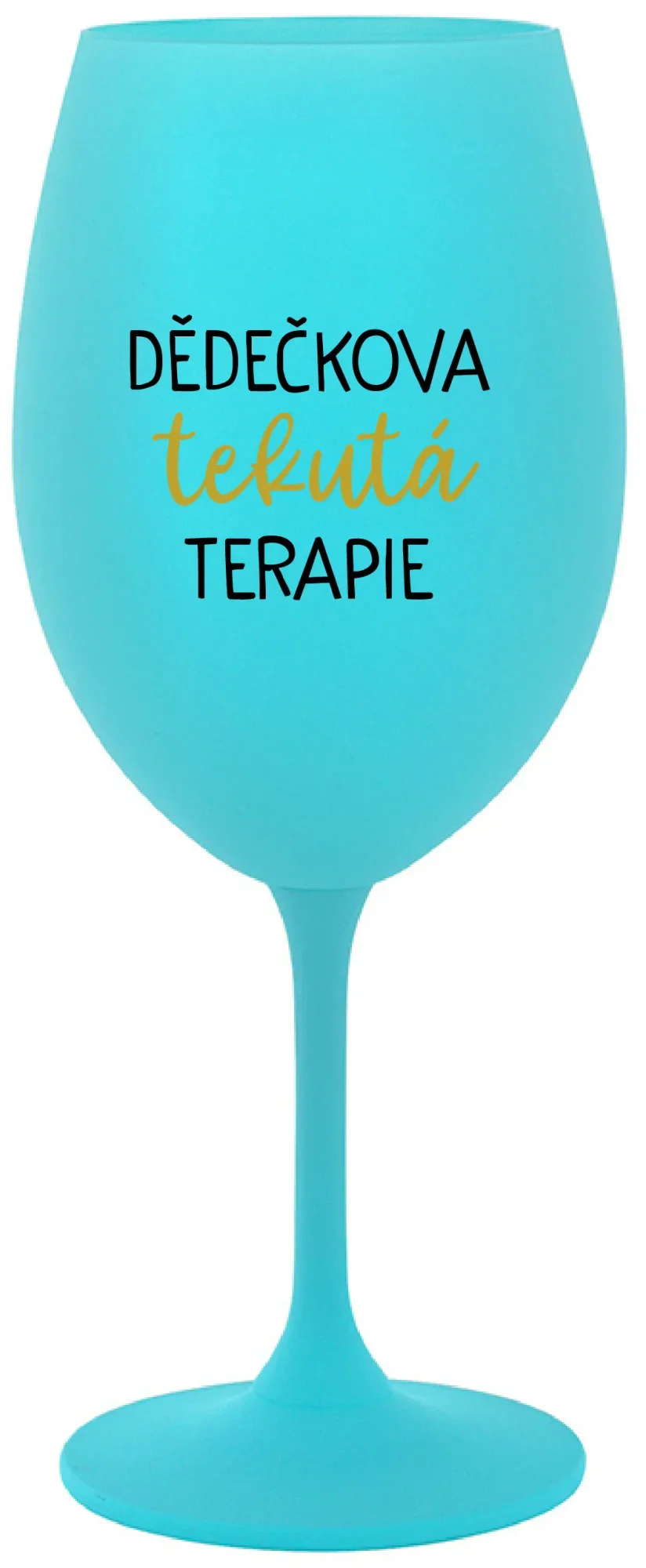DĚDEČKOVA TEKUTÁ TERAPIE - tyrkysová sklenice na víno 350 ml