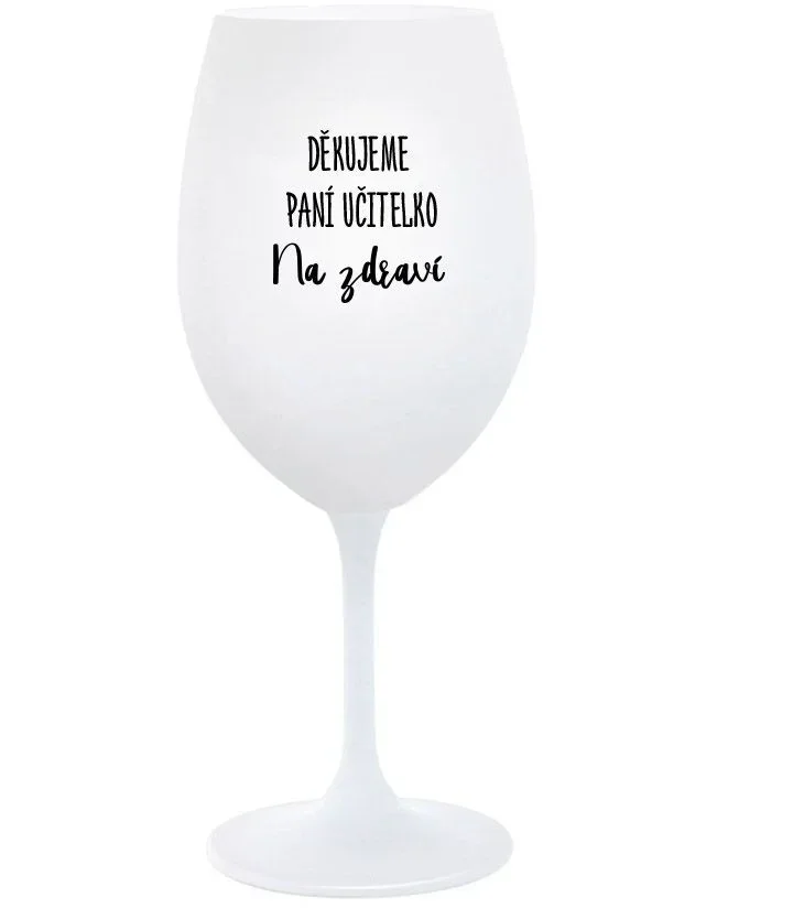 DĚKUJEME PANÍ UČITELKO - NA ZDRAVÍ - bílá sklenice na víno 350 ml