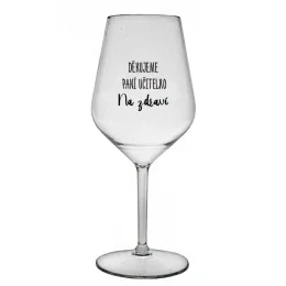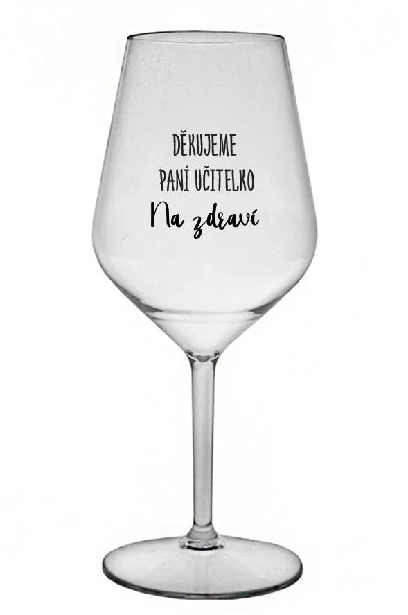 DĚKUJEME PANÍ UČITELKO - NA ZDRAVÍ - čirá nerozbitná sklenice na víno 470 ml